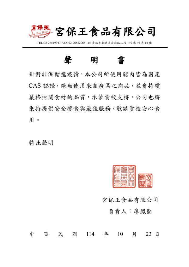 學校營養午餐豬肉來源聲明書Post author:學務處 健康中心Post published:2025 年 10 月 23 日Post category:營養午餐專區 / 重要消息 Post Views: 82